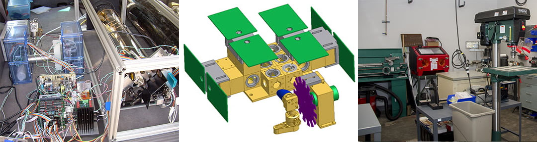 - Software: Solidworks 3D modeling and simulation software and high-performance graphics workstation for mechanical design and rendering; MeshCam, Mach4, and PathPilot CNC software; LabView Developers Suite; Optica3 optical design package.